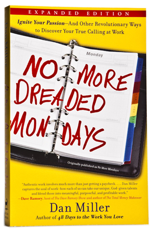 I opened the pages of Dan Miller’s “No More Dreaded Mondays” with great hopes that this book might be markedly different from the plethora of other self-help, get-organized, discover-your-true-calling books that line the bookstore shelves. Although it was not altogether different, the information was packaged in an easy-to-read format and the “Revolutionary Insights” inserted every few pages gave personal stories to highlight the major points.