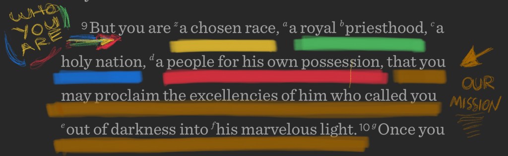 TO PROCLAIM THE EXCELLENCIES OF GOD – The one who “called you out of darkness into his marvelous light,” is worthy of our praise – now and forever. We are to declare His praises in our worship, but we are also to proclaim His glory to the world in our witness.