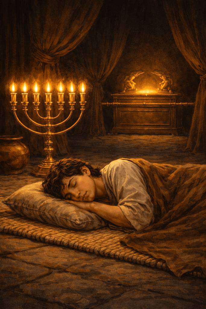Samuel lay near the ark. Today, we draw near through Christ (Hebrews 10:19–22) and through His Word.